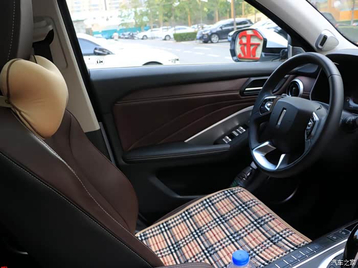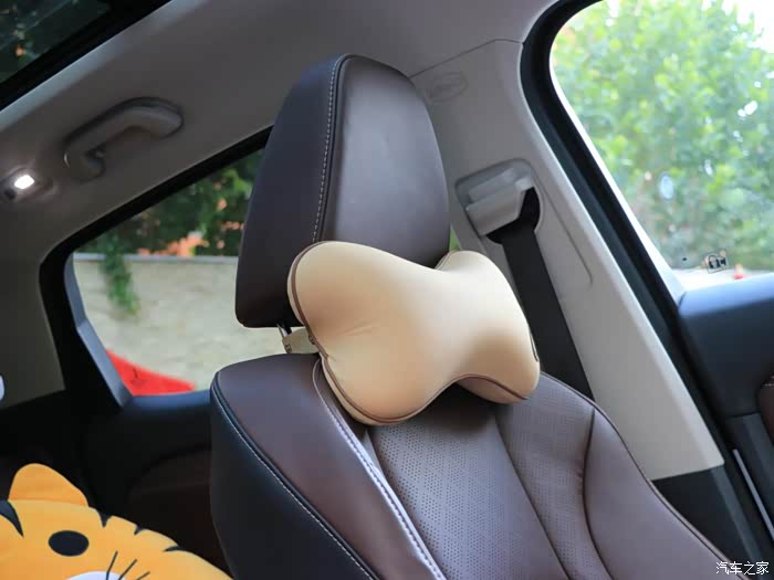 米色的坐垫和头枕,套在座椅上还蛮好看的。