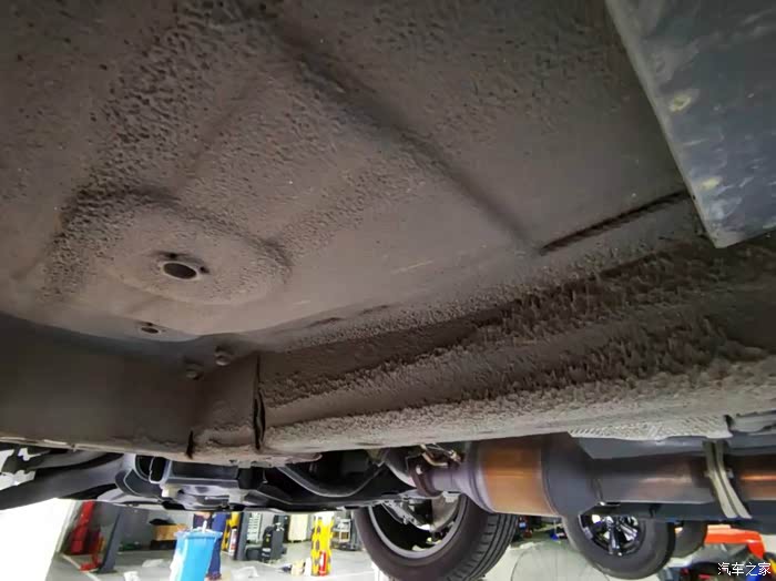 上架子了!师傅说底下的这个凹凸不平的涂装是用来防腐蚀、降噪的,涨知识了。