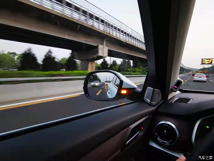 平时在环路上开车并线的时候会有并线辅助,当后方有车时对应一侧后视镜上的车灯会亮起,车内也会想起警报声,安全性更高。