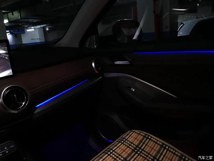车内还有氛围灯,淡蓝色的光感非常柔和,也不会影响我看球赛。