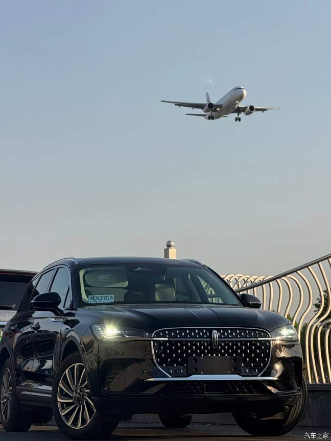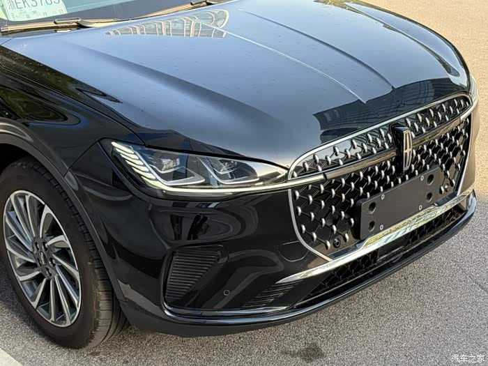 车头来一张,这个日行灯设计辨识度也很高,一直延伸进中网,晚上点亮之后路上很好辨认。我这个纯油的,所以车标就是原色,如果买的是混动冒险家,林肯车标就是蓝色的。