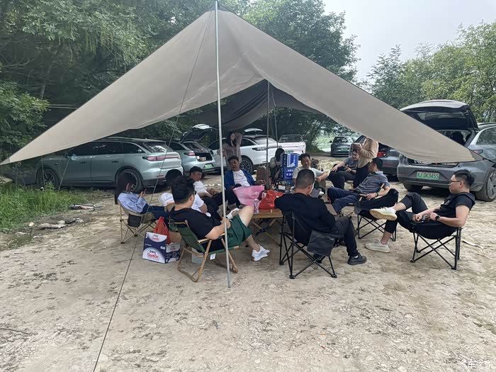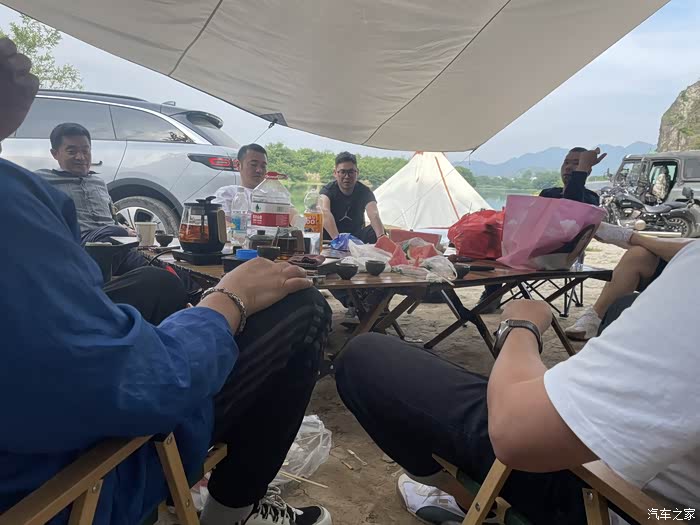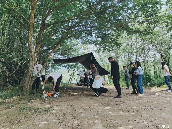 不多说,先开工扎营布阵。男车友出力,女车友献策