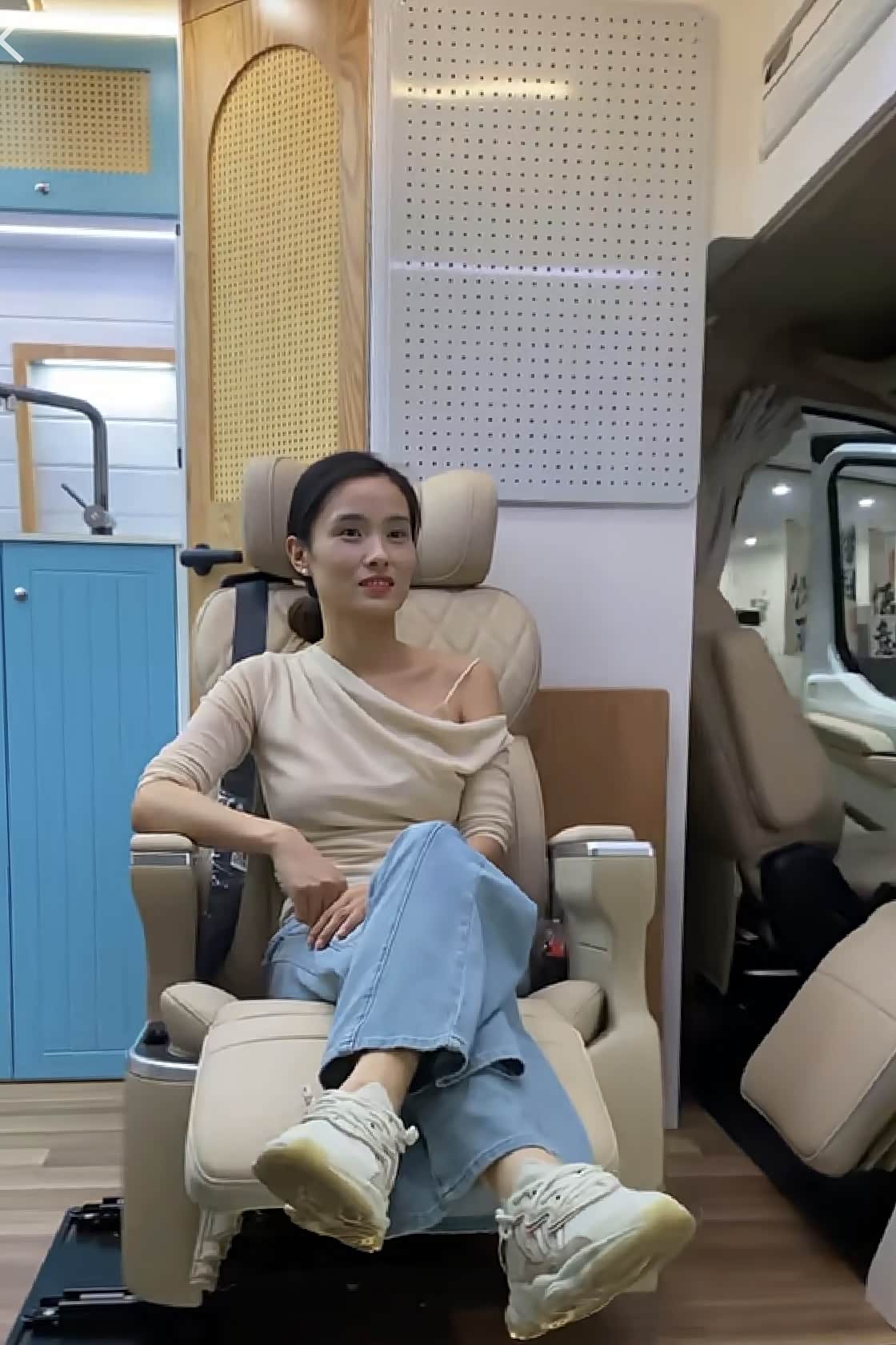 副驾和二排VIP航空座椅都可以一键旋转,对坐下午茶和办公阅读都不耽误。三个座椅足够足够,貌似我的双拓房车出游也没超过3人。座位靠前,乘坐舒适度更佳。