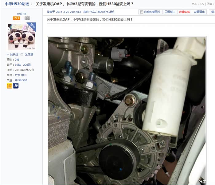 国内采用此技术最早的车型应该是丰田卡罗拉,目前合资品牌如北京现代,大众很多车型都是oap轮了(我知道的有k3、名图、宝来等等),很多国产车也都已经采用的oap轮,比如长城h6、绅宝x55,另外看看,现在出的中华主打车型新款中华v3都已经悄悄把发电机皮带轮换成了oap单向轮了,如果没什么用的话,厂家怎么会花成本去做这个改进。貌似现在oap单向轮就是个基本盘的东西(厂家成本可能就是100元左右),因此也不会拿来作为技术亮点大肆宣传。h530这款接近于停产的车型,厂家大概是不会花精力去做改进了(就算改进,我们这些老车主也不可能免费更换的了)。