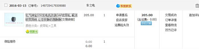 另外说下,更换这个oap轮,在汽修店弄一次大概是30元,第一次是自己出的钱,第二次调整弄完,跟他说了,淘宝店家马上退了30元到我的微信红包,是蛮实在的一个人(虽然在技术细节上有那么一点不太靠谱,呵呵)。
