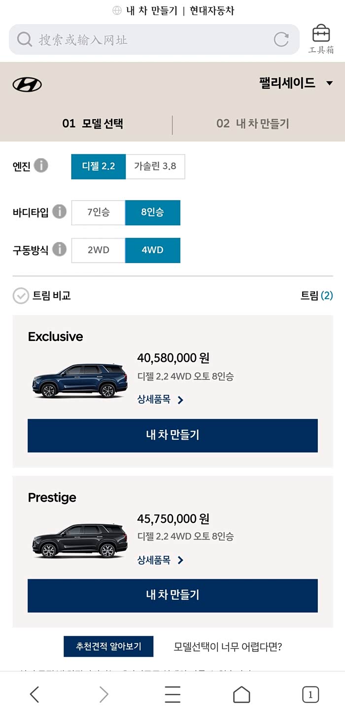 韩国官网帕里斯帝只有3.8l和2.2t柴油两款并且柴油版居然还贵一丢丢这个确实没想到