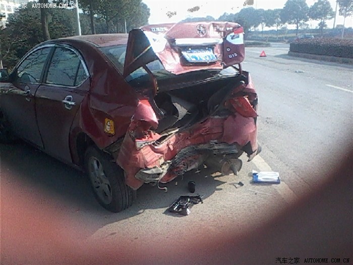 我三角架处(无禁止掉头标志,有减速驳)掉头后被其结结实实的追尾了。估计对方一点刹车都没带啊。