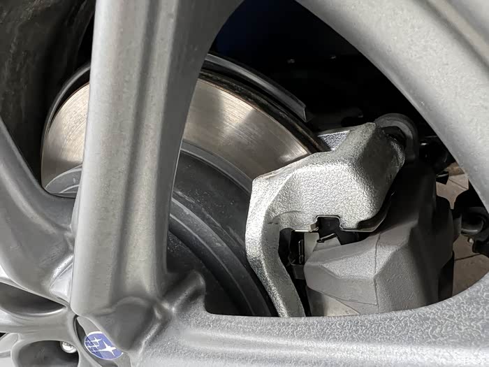 前轮刹车目测应该是斯巴鲁自吸车型的大小,比老款大一点,轮毂依旧为enkei代工,旋压铸造,18寸7.5J,ET值48,PCD依旧5x100,中心孔56.1。