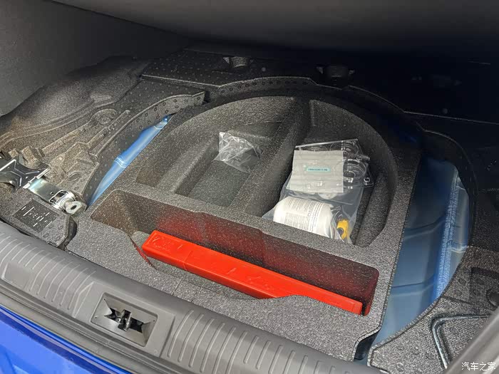 国行版没有备胎,很明智的决定,这样后备箱才能拉下轮胎轮毂。