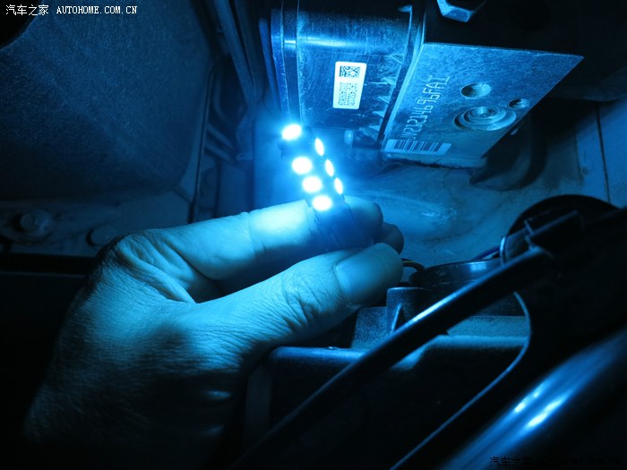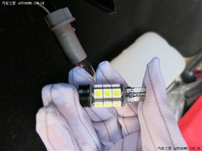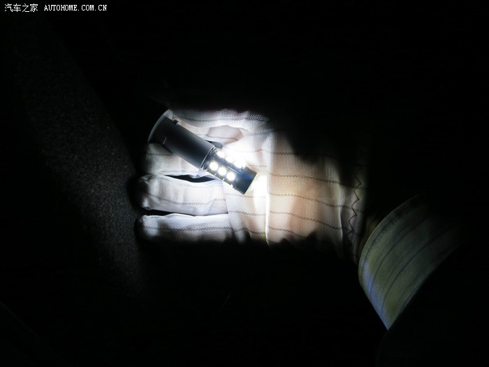 开始上流氓倒车灯了。请忽略手套。原理和示宽灯一样。要是不亮就换另外一面插入即可。