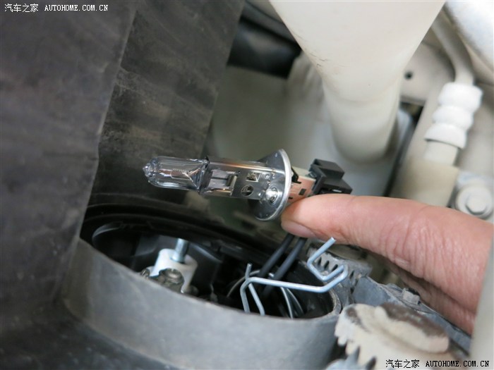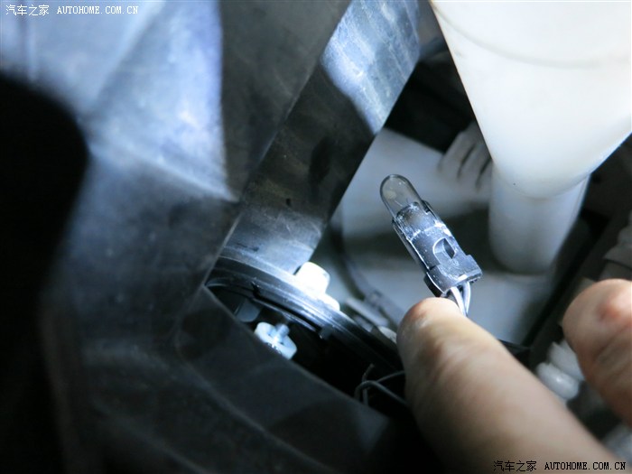 为了方便最好大灯总成松开螺丝,适当往外推出适合位置。