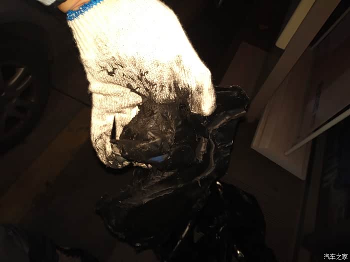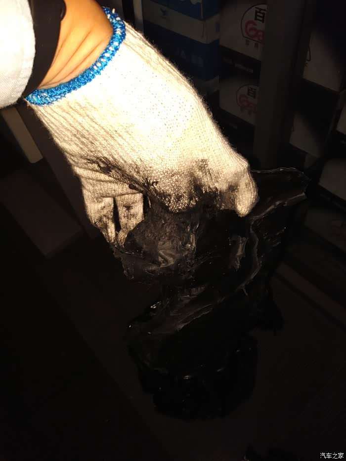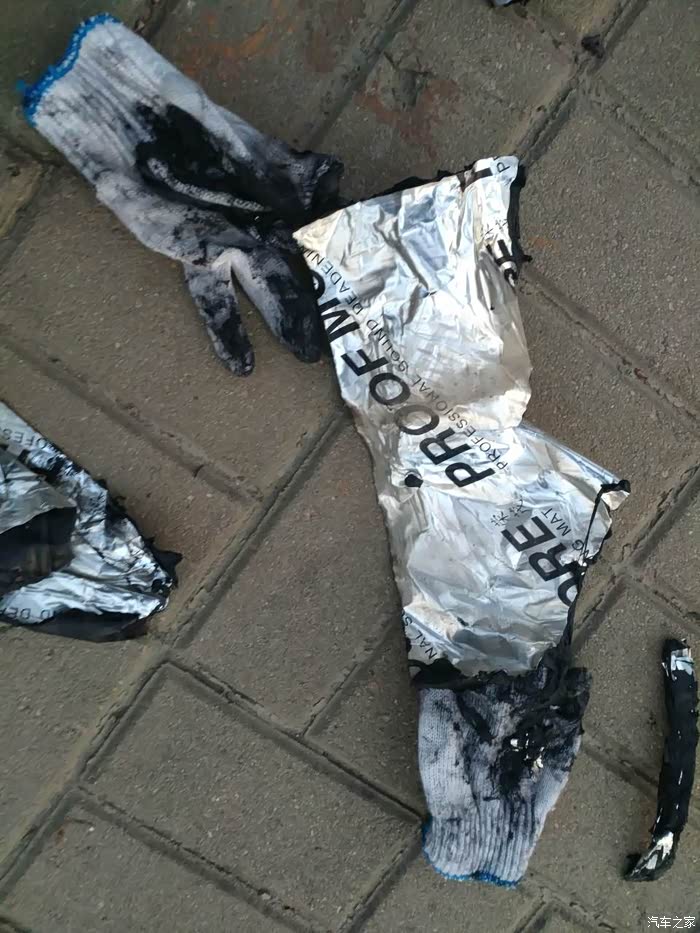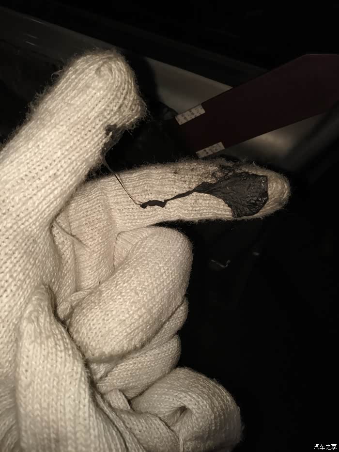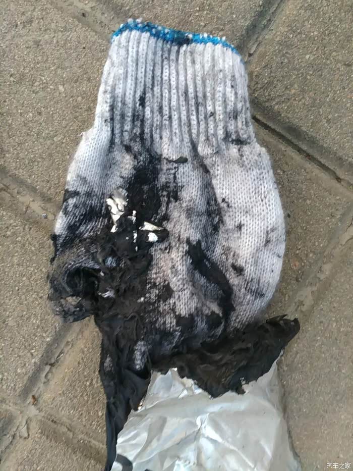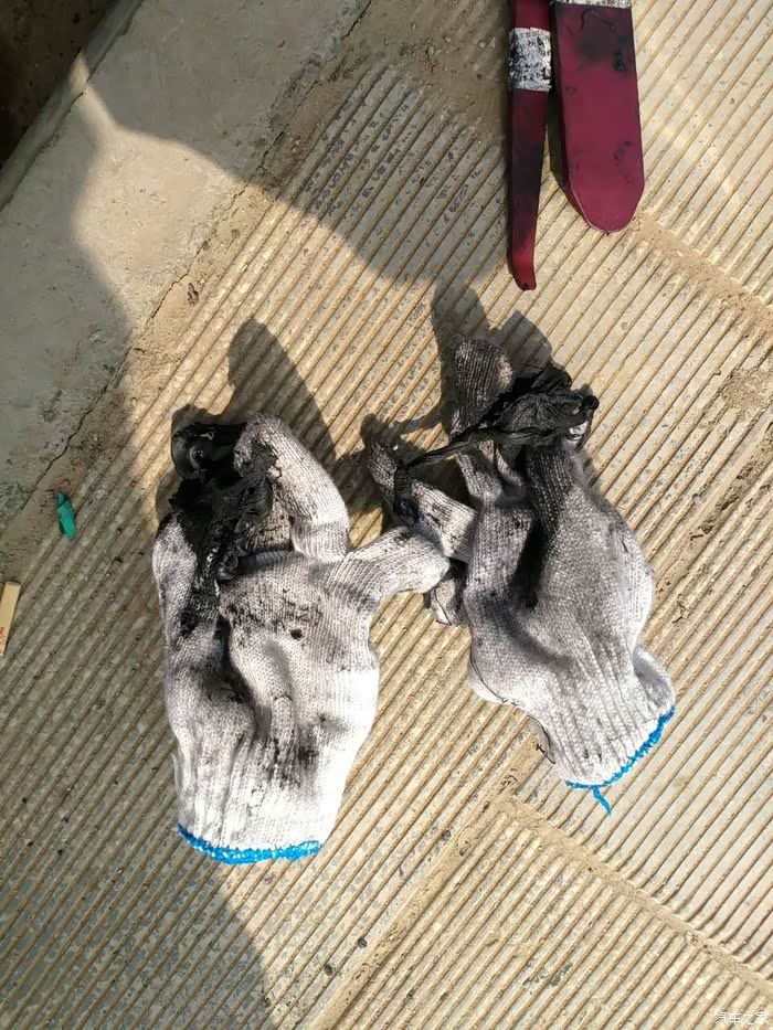 这次是在外面施工,车上忘记放手套了,这东西很粘手。
