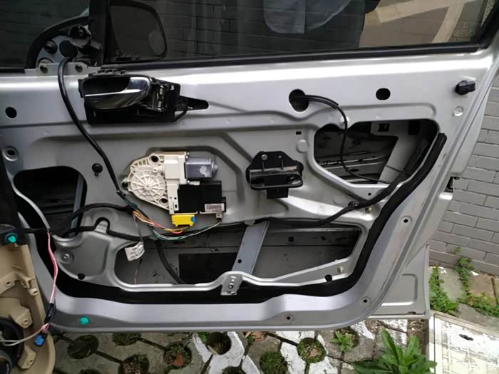 清理的这几个月,门板都是拆掉的状态,但画还每天要开,车窗每次还是要升降,因此升窗器就这么挂在门上,将就用。