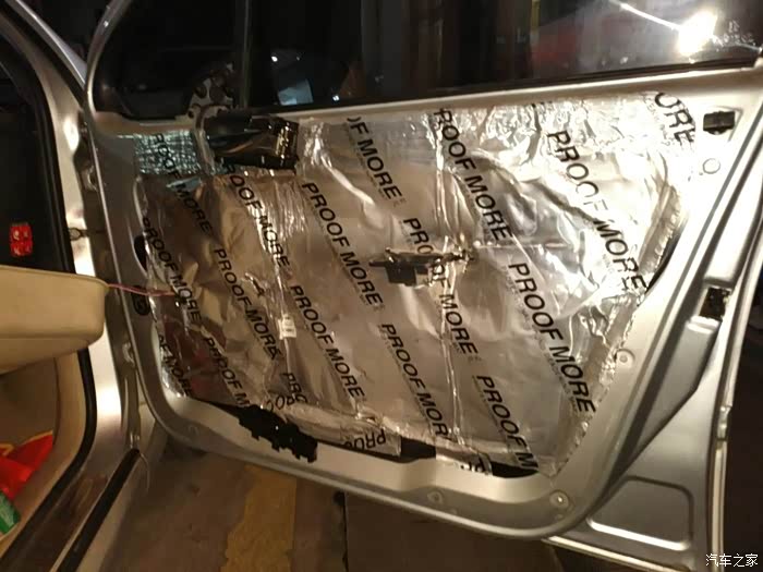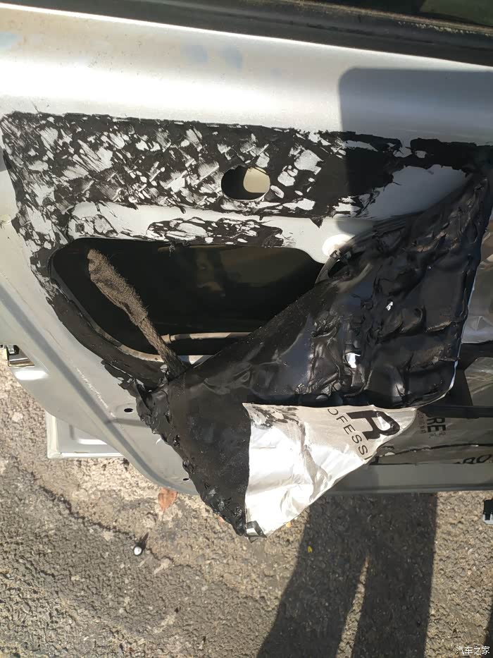 大概6年前,为了提升车内的音响效果,请音响店安装了前门隔音,材料使用的是荣茂隔音,效果不错。可惜当时的隔音止振垫使用的应该是黑色沥青类材料,导致车内一直散发一股热呼呼的气味。