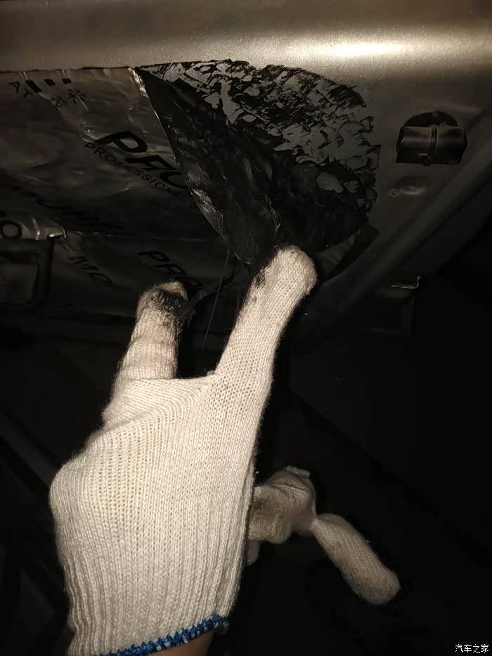 下面用图介绍如何除掉隔音止振垫,关键是散发气味的黑色的胶状物。