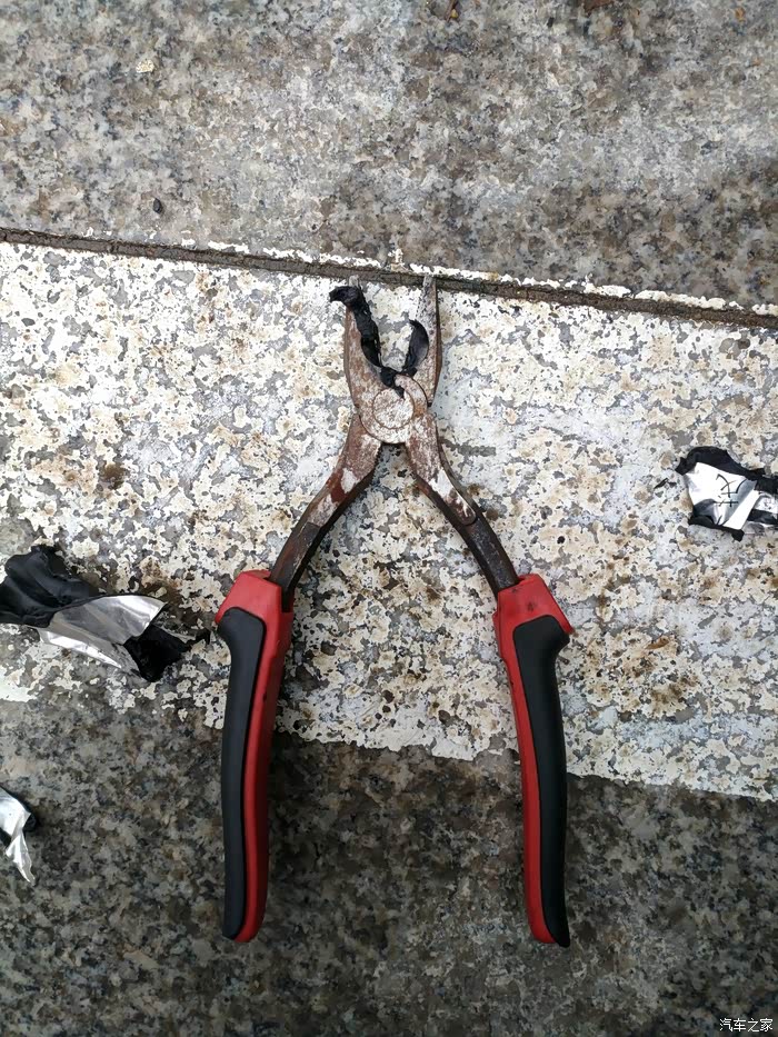 家里的老虎钳子,上面已经沾满了隔音止振垫上的黑色胶。