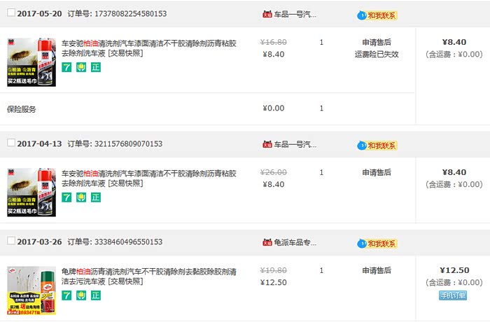 1.柏油沥青清洗剂3瓶(12.5元+8.4元+8.4元)