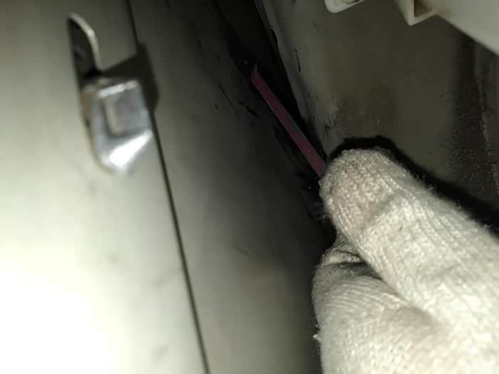 我身高近1.80米,手算长的,因此,费了很大的功夫,勉强把内层门铁板上都清除干净了,如果换手短些的朋友,估计会更困难。