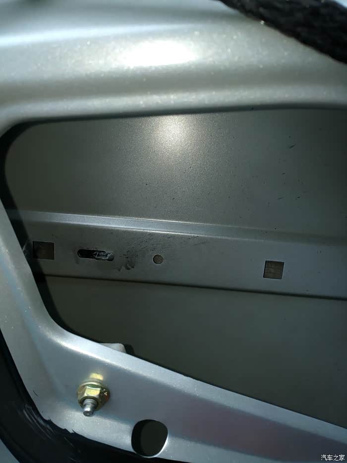门上的点点是做过钣金留下的痕迹。所以,拆了门板,就知道门有没做过钣金了。