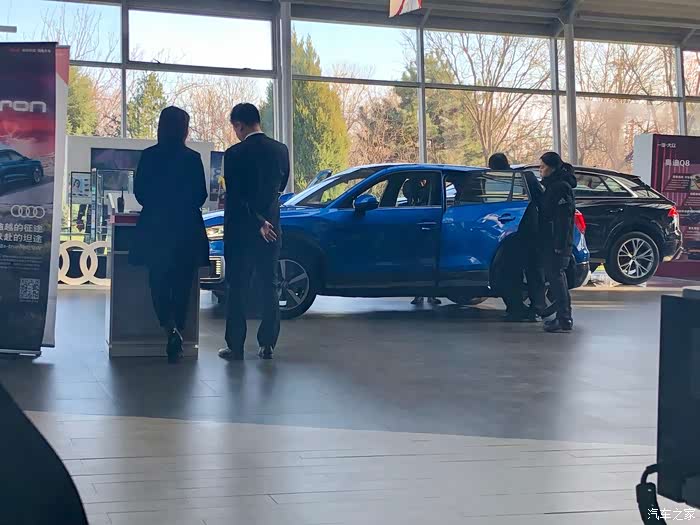 进店就看到了Q2L e-tron,有几个人正在看车。