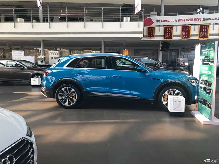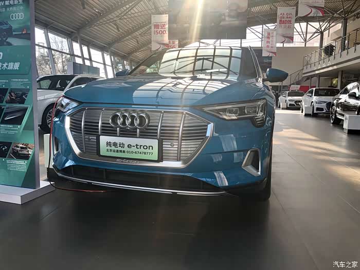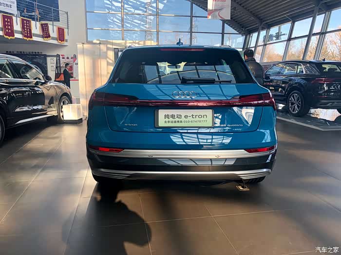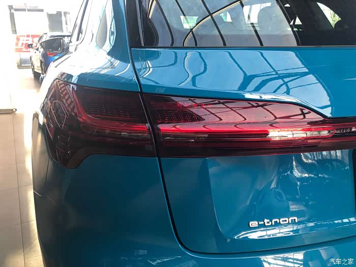就是这辆跟Q2L e-tron一块上市的奥迪e-tron了,这个蓝色看起来还挺个性的。
