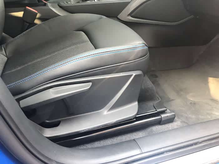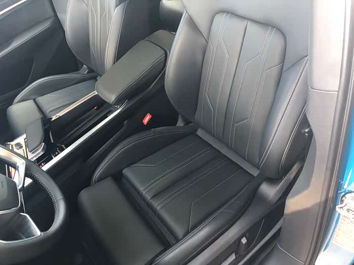 前排座椅,座椅周边还有个蓝色缝线,挺精致。