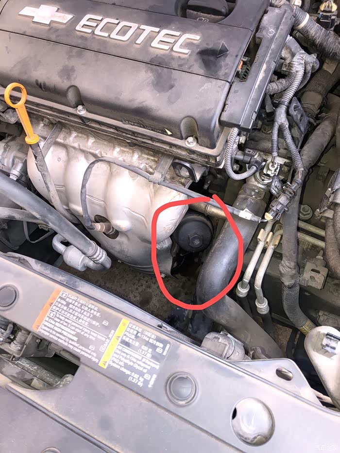 科鲁兹机滤底座漏油,滴到排气管上冒白烟,逃不过的宿命