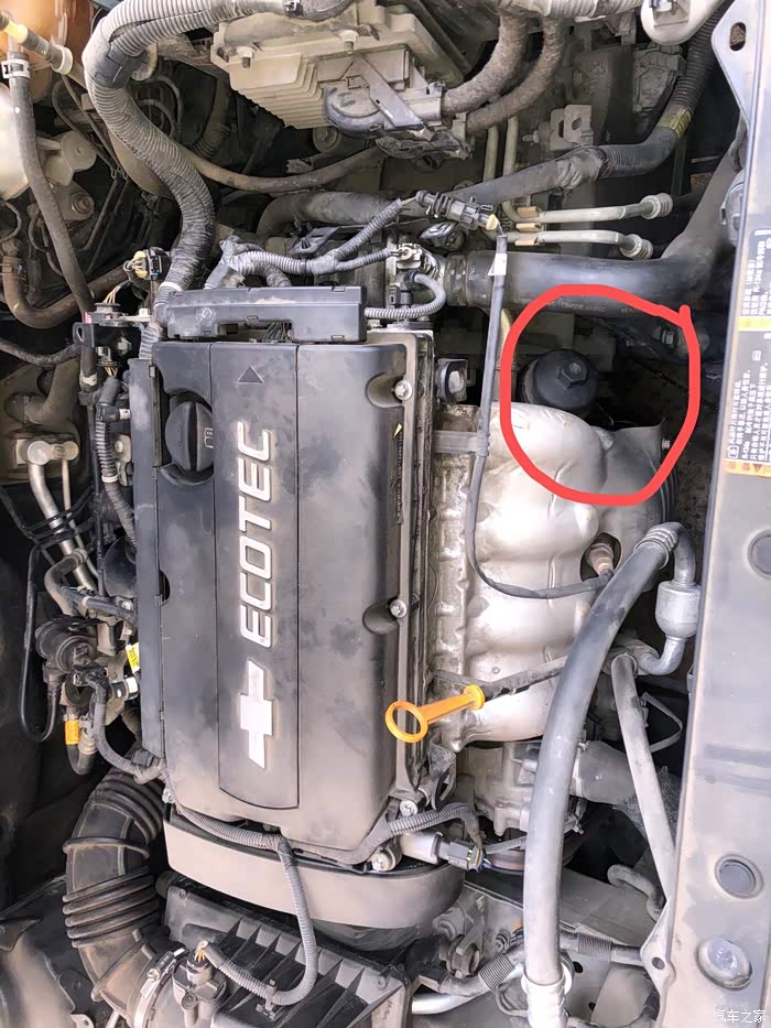 科鲁兹机滤底座漏油,滴到排气管上冒白烟,逃不过的宿命……哎~