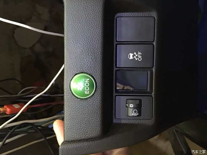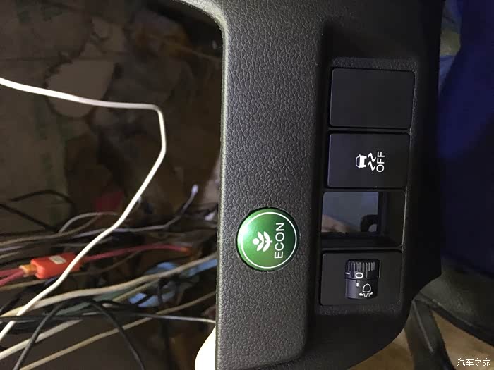 闲来无事,买了个ECON按键,想装回原车位置,拆了盖板,发现原厂预留了固定位置,于是开孔,安装,开孔开的不太圆,纯手工用刀子开孔的,效果见图,回头接回仪表的连线就完工了