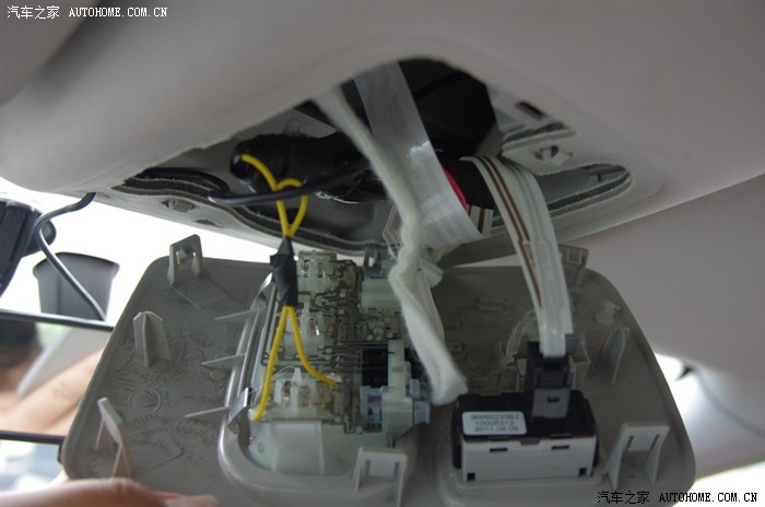 太大,只能塞车顶的线洞里(最右边出线的地方):