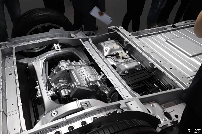 这是后桥部分:后驱电机及油箱,中间就是电池