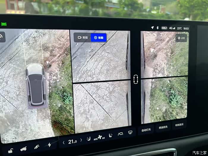 当驶入一个狭窄的巷道,你不知道是否会蹭轮毂的时候开启360全景影像的轮毂视角就能帮你轻松搞定。