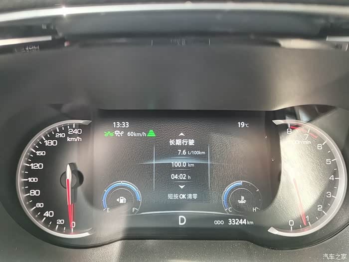 拍摄的这张仪表盘是中午吃完饭回来,在市区油耗7.6升