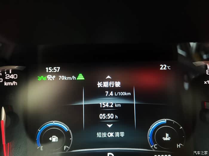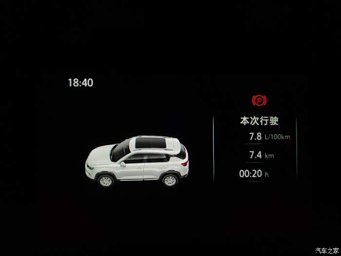 在市区行车如果拥堵的路段,油耗也要将近八个,这个仪表盘是下午的,16点40分熄火,行驶了20分钟,行驶的里程是7.4公里,显示的油耗是7.8升。