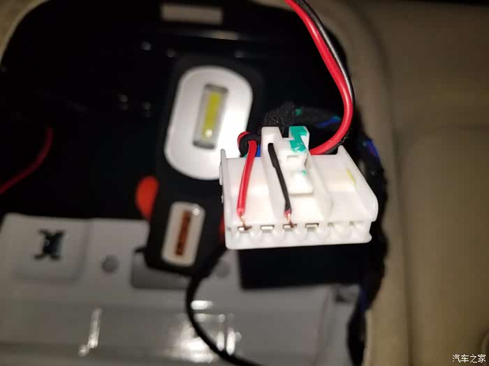黑色线为冷光线驱动器的负极,红色线是正极,按图上的两头插进去就行了,插到原车门拉手插座上