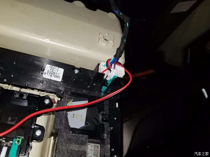 中控台冷光线布线方式细节图。这个地方走线需要用3M胶粘贴上去就行了
