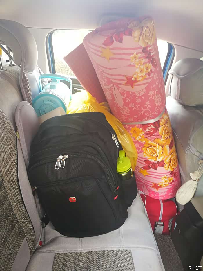 世嘉虽小,但可以装好多东西,孩子的书包、被褥、学习用品、生活用品······满满一车。