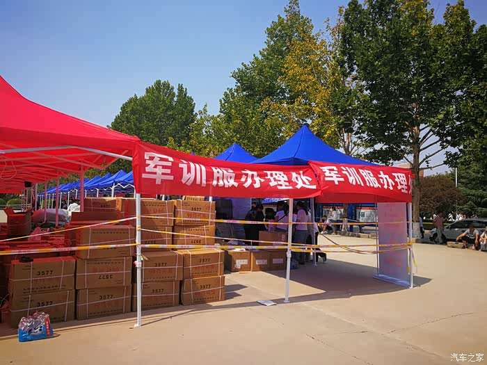 领取军训服装地点,井然有序,师生不仅态度好,还有耐心,都让试一试合适了再走。