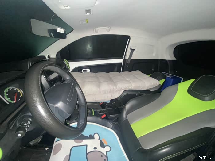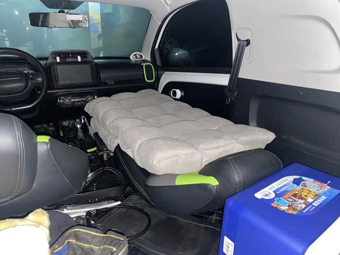 一个榻榻米座椅折好适当的角度反着放(靠背在副驾底下放脚的地方支撑),另一个榻榻米座椅平铺,副驾头枕的位置在放个枕头就可以躺平睡觉了
