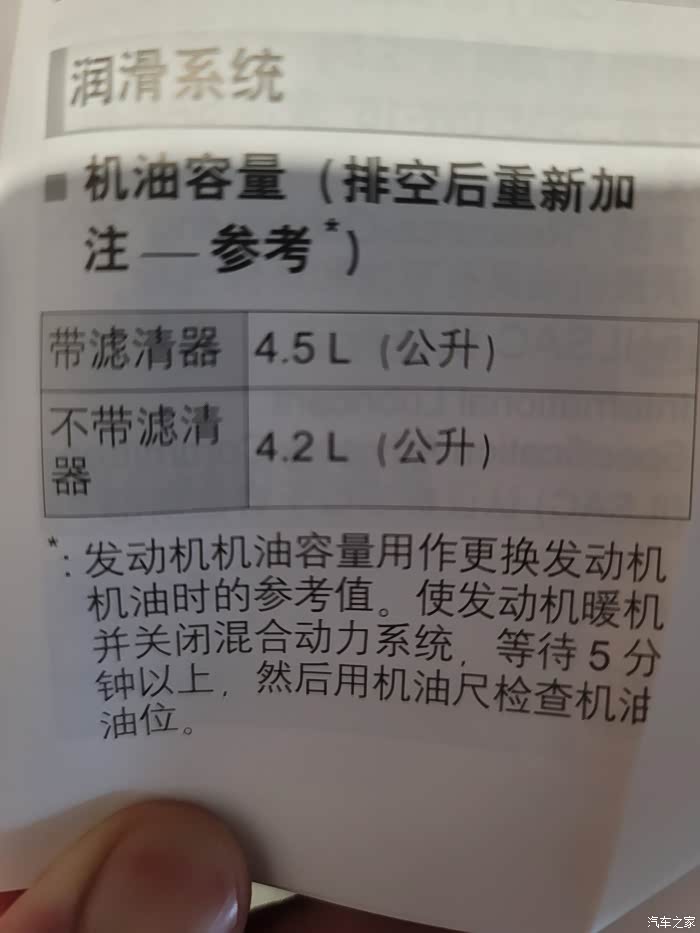 第一次去保养,师傅给我加的4.5升(说明书下面也写的加4.5),自己到家过后检查机油尺,超过了最高刻度一厘米。第二次换机油,只加了4升机油,机油位置在刻度中间偏上。所以我们的车到底加多少升呢?