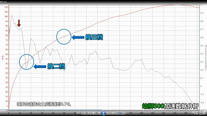 ↑百公里加速5.6秒究竟有多快, 视频中也针对了实测导出的加速曲线图进行分析。