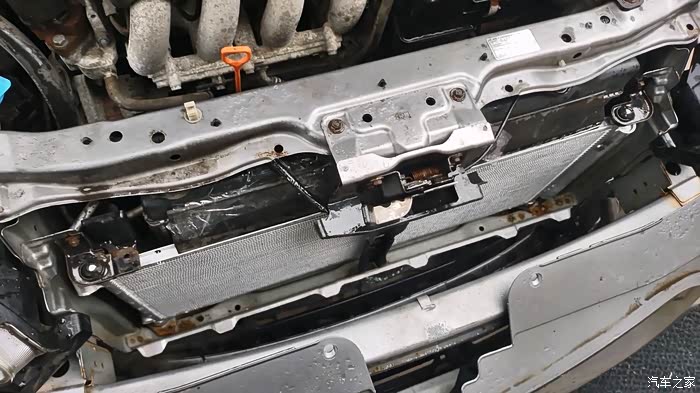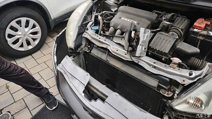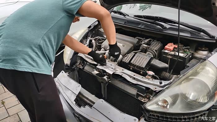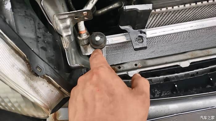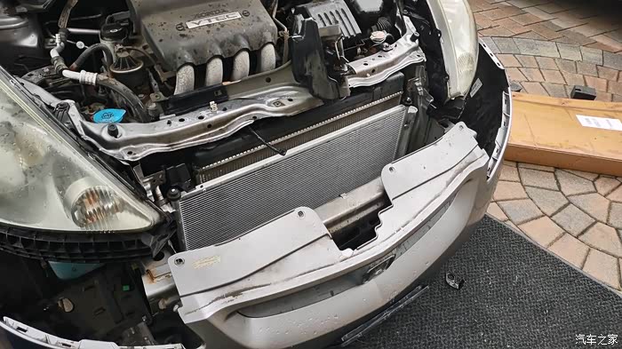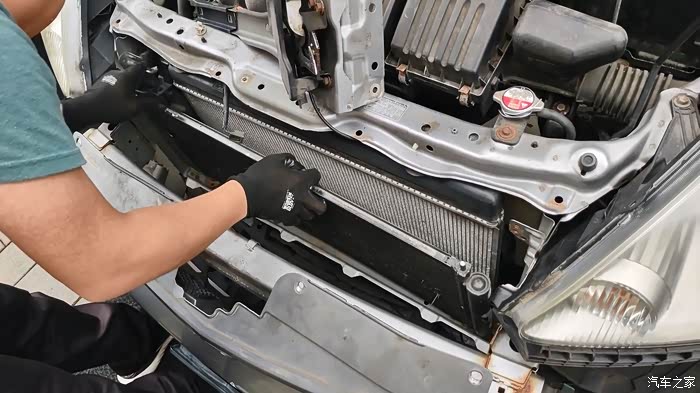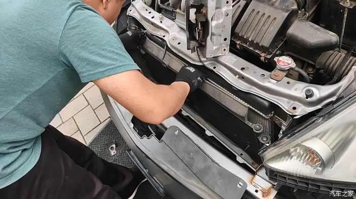 这里得表扬一下本田这设计,算是对维修来说非常友好了,不需要抬车,不需要拆水箱框架,只需要把前保险杠拆开,再拆点小零件就可以够得到了。