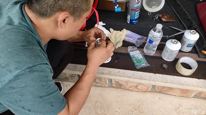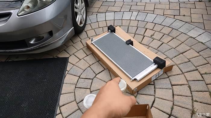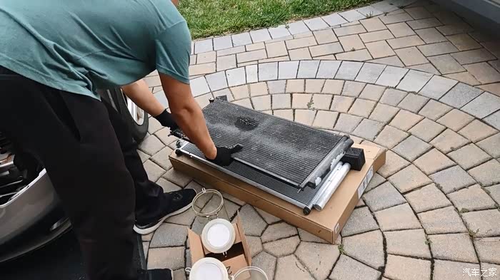 说下大致顺序,那就是:拆保险杠,断电,拆车前盖卡扣机械部分,断开冷凝器管子,把旧冷凝器橡胶垫转移到新冷凝器上,更换冷凝器管子的橡胶圈(记得要用冷冻油润滑),装新冷凝器,抽真空测试,打制冷剂,测试空调效果。总时长不到两个小时,除了中间因为下雨耽误了点时间,算是非常顺利。