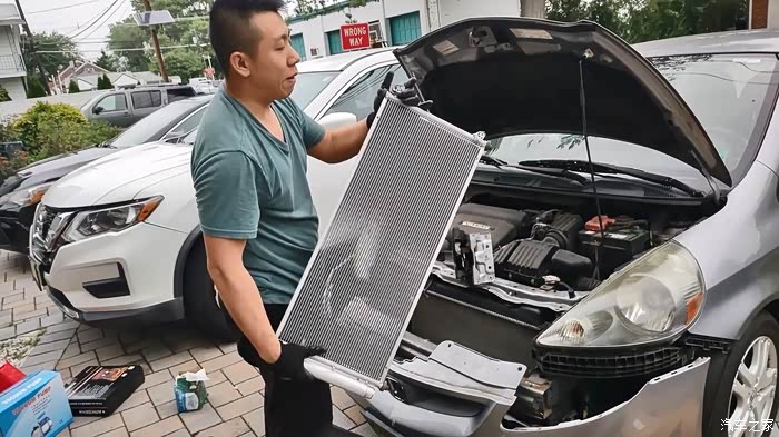 【海外自己动手保养】美版老本田飞度,DIY换空调冷凝器充制冷剂