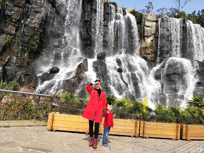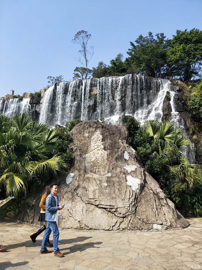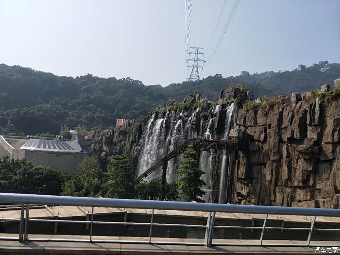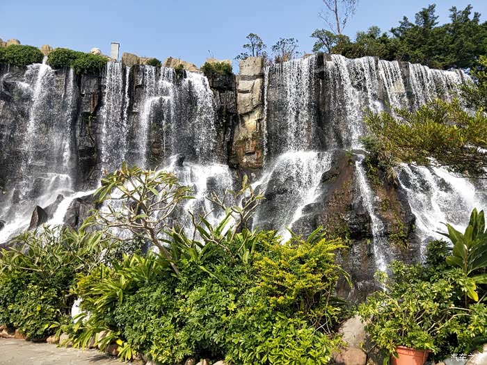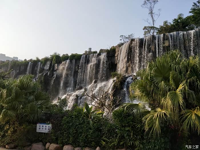 离得这么远就能听到水声,看起来十分壮观的人工瀑布
