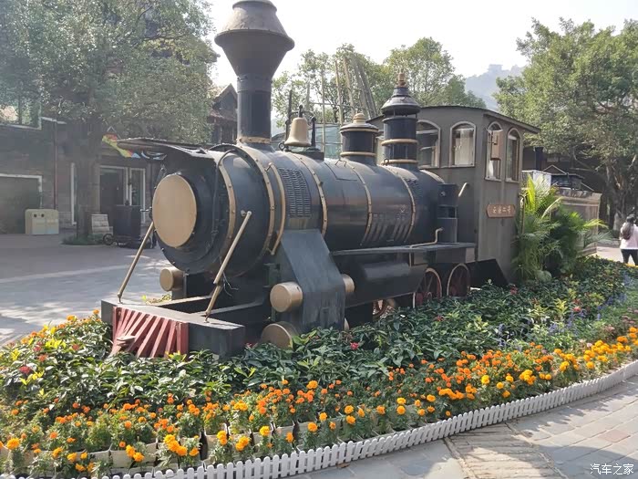 小火车下面的花吸引了媳妇的注意