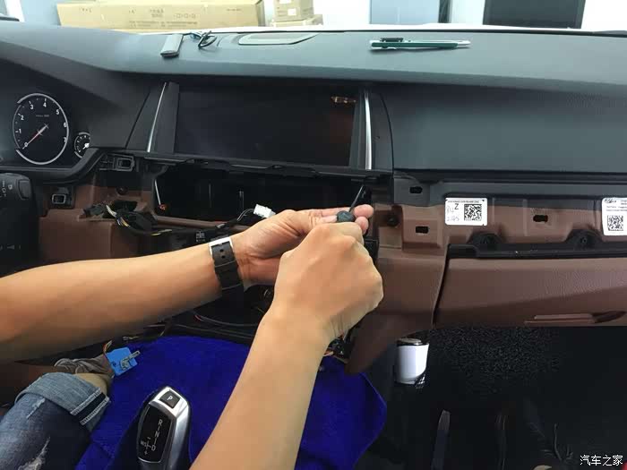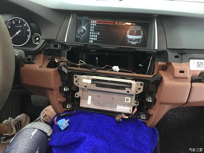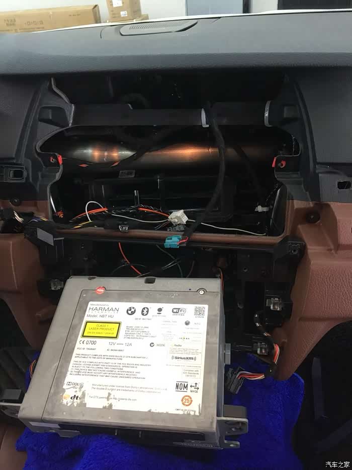 拆开桃木纹装饰条和空调面板后就能看到原车的NBT主机了
