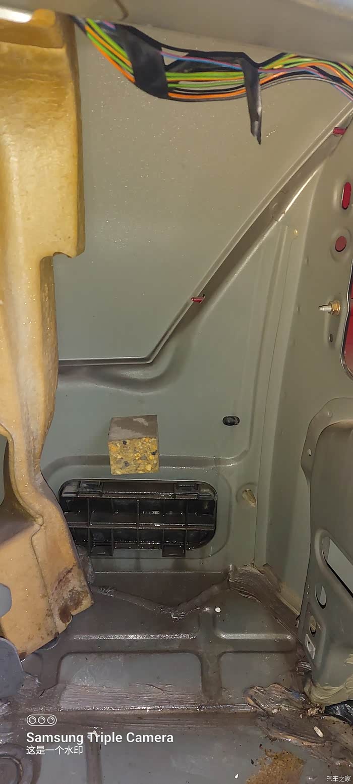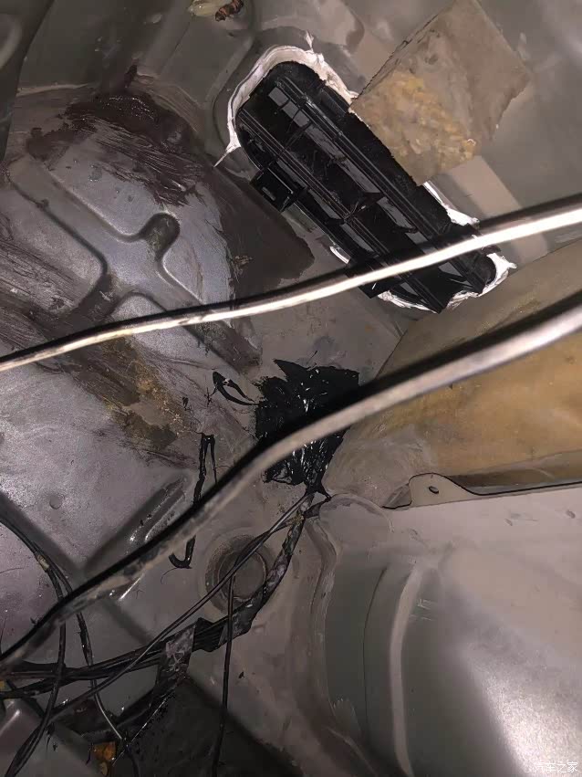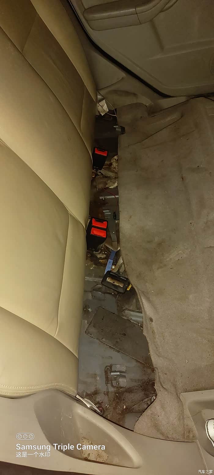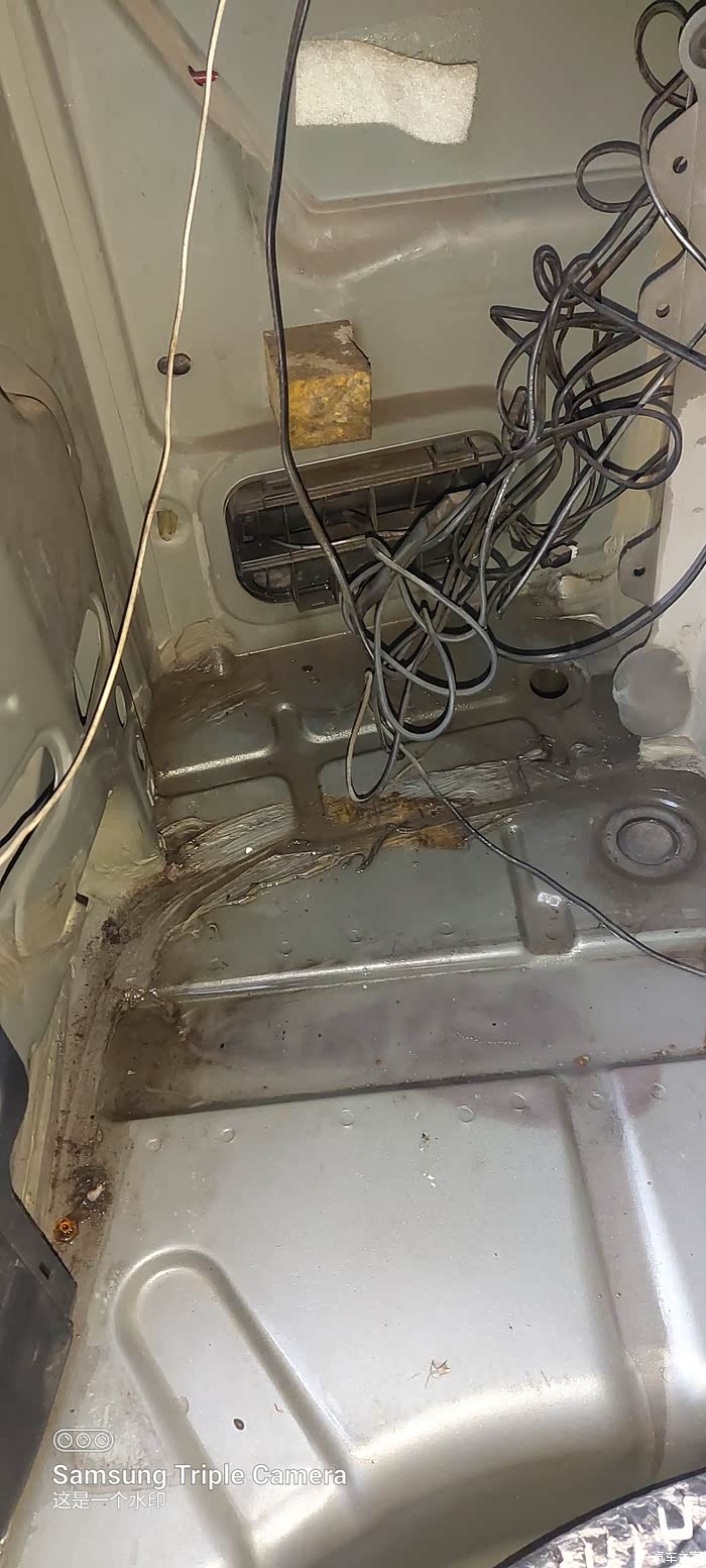 回到家看了一下两个大灯还是07年出产的,没看过,也就是说前面没有什么严重的碰撞。就在我心里暗喜时,帮我放倒后排座椅的时候,心里咕咚一下,卧槽全是积水,后备箱备胎槽里的积水已经可以养鱼了、甚至后排地板里的隔音棉也全是水、初步判断是后备箱漏水。