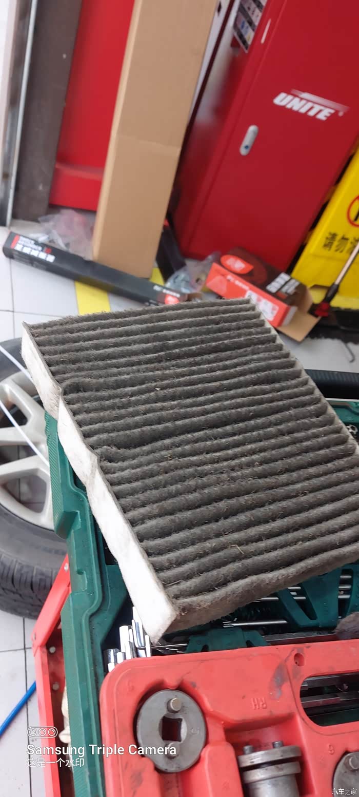 师傅表示四个刹车皮快磨完了、后避震防尘套破损很有可能避震效果很差(后来拆下来试了一下 压进去确实不怎么会回弹)、更换空调滤芯、顺便帮我做了空调管路的清洗