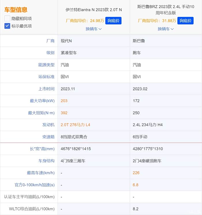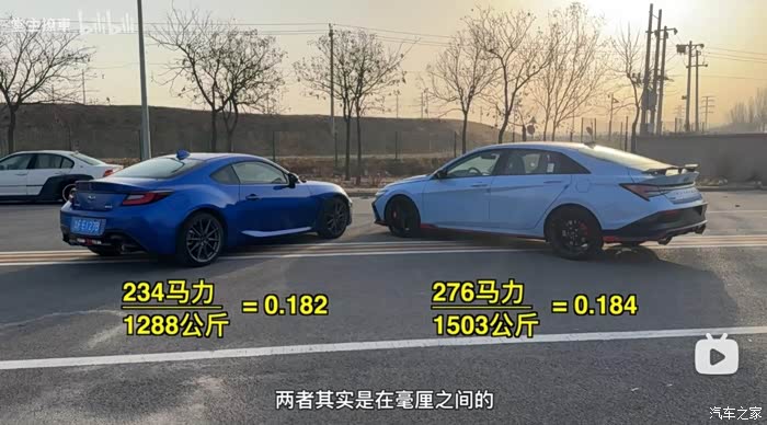 最后,BRZ的车重也要比伊兰特N更轻,换算成推重比之后,两者更是十分接近。